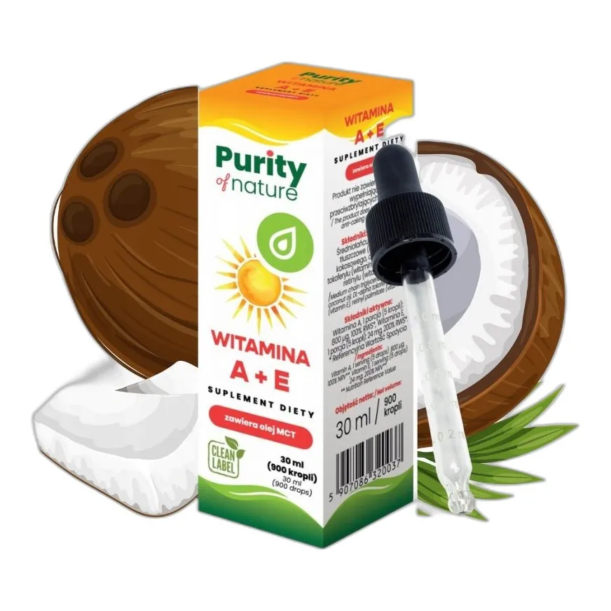 Witamina A+E krople 30ml w oleju MCT OCZY I SKÓRA 180 porcji a Twoje posiłki